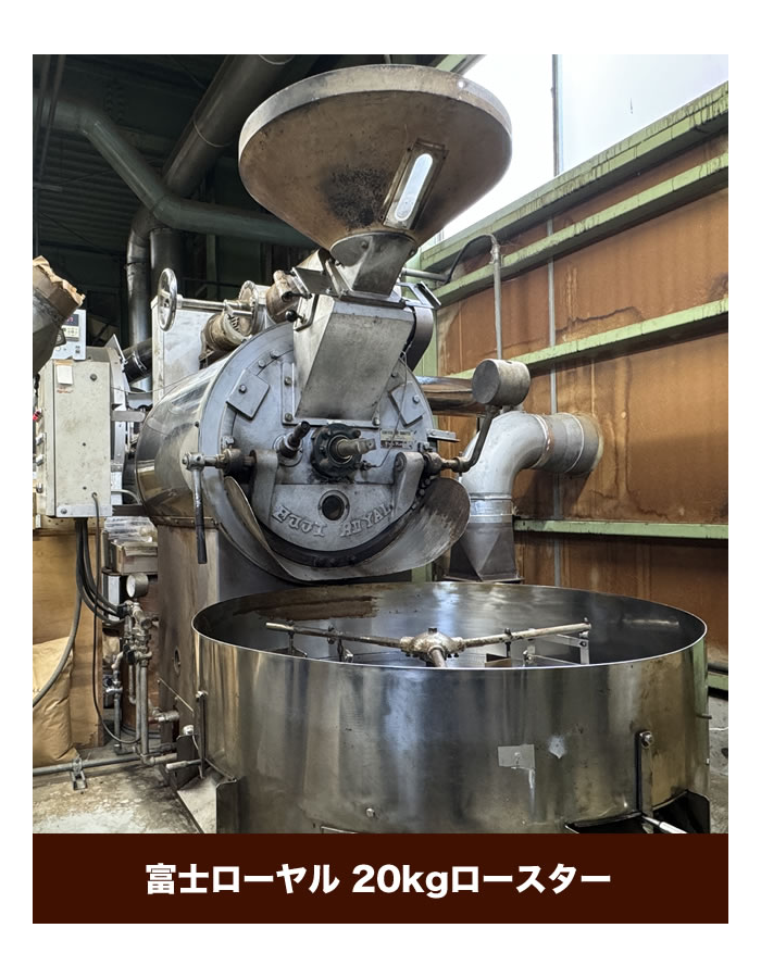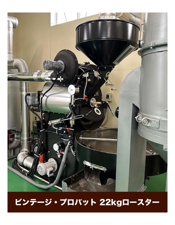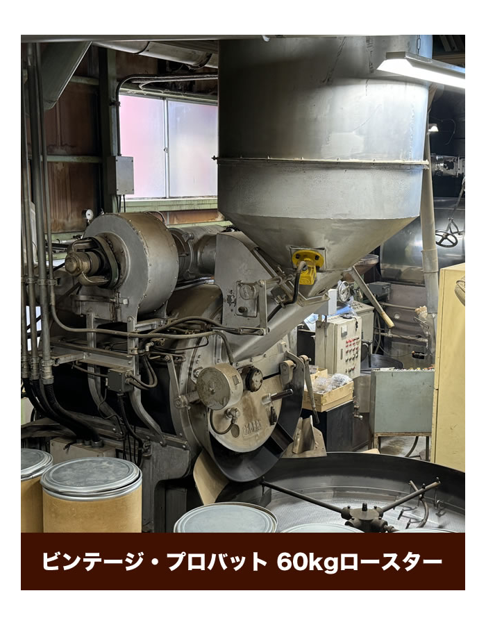 スペシャルティ、プレミアム、コモディティなどの常時在庫された世界各国約130種類の生豆を、熟練した焙煎スタッフが、ビンテージ・プロバットロースター、富士ローヤルロースターなどを用いて、日々焙煎をおこなっています。